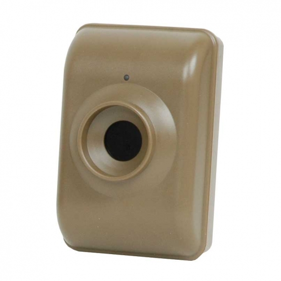 The wireless motion transmitter operates on one 9V battery and is easily mounted on a tree or post near the driveway. The transmitter uses a passive infrared (PIR) beam to detect people or vehicles to a distance of up to 8092, then sends a radio signal back to the receiver located up to 1 mile away. Actual range may vary depending on the local terrain. The transmitter is weatherproof and meant for exterior locations. It can operate in cold weather conditions.