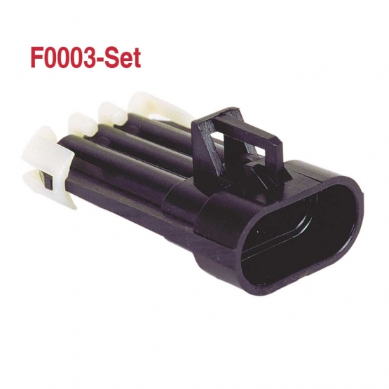 For your convenience, this set gives you the opportunity to purchase everything you would need in a package that includes F-F0003 (12129615) male connector body, three F-F4300 pin terminals, and three F-F6000 seals. Mates with F-F0004-Set.