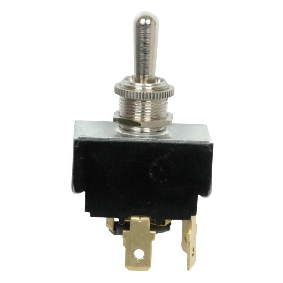 Momentary On-Off-Momentary On, Reversing Polarity Toggle Switch. Used for control of DC motors only. Switch shaft is spring loaded and returns to center position. When in the up position, the motor will run in one direction; and when in the down position, the motor will run in the reverse direction.