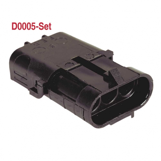 For your convenience, this set gives you the opportunity to purchase everything you would need in a package that includes F-D0005 (12010717) male connector body, three F-D2700 pin terminals, and three F-D3600 seals. Mates with F-D0006-Set.