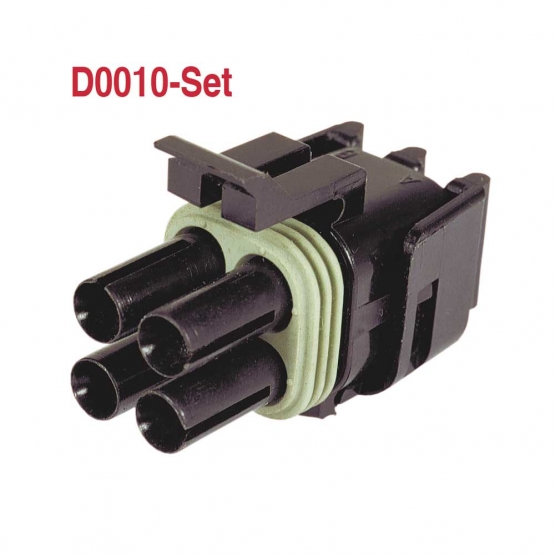 For your convenience, this set gives you the opportunity to purchase everything you would need in a package that includes F-D0010 (12015798) female connector body, four F-D2800 socket terminals, and four F-D3600 seals. Mates with F-D0009-Set.